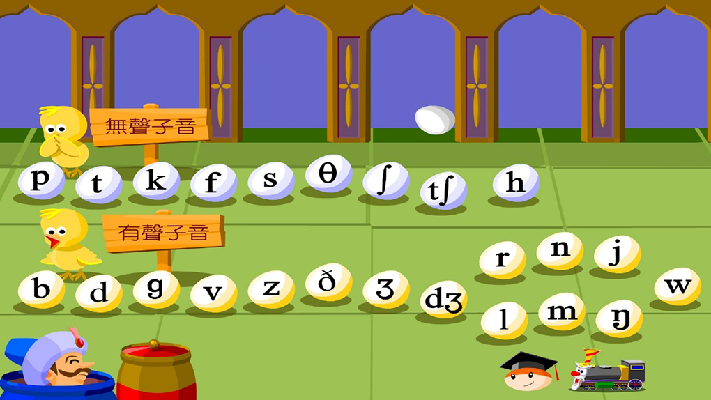 ( 上圖為「子音 + 母音」配對遊戲的畫面 )