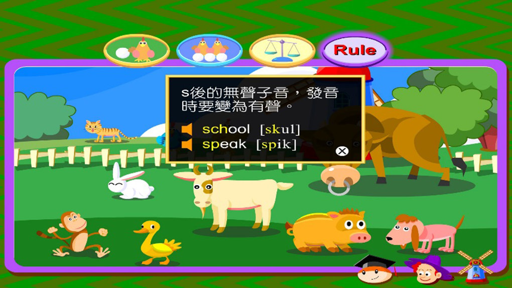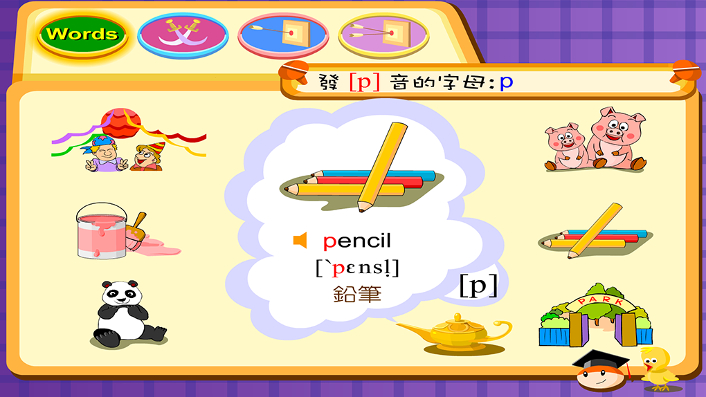 本產品在介紹新的單字時,可以讓您輕易地把聲音和字母逐一對位,可以一次精確學會發音和拼字。