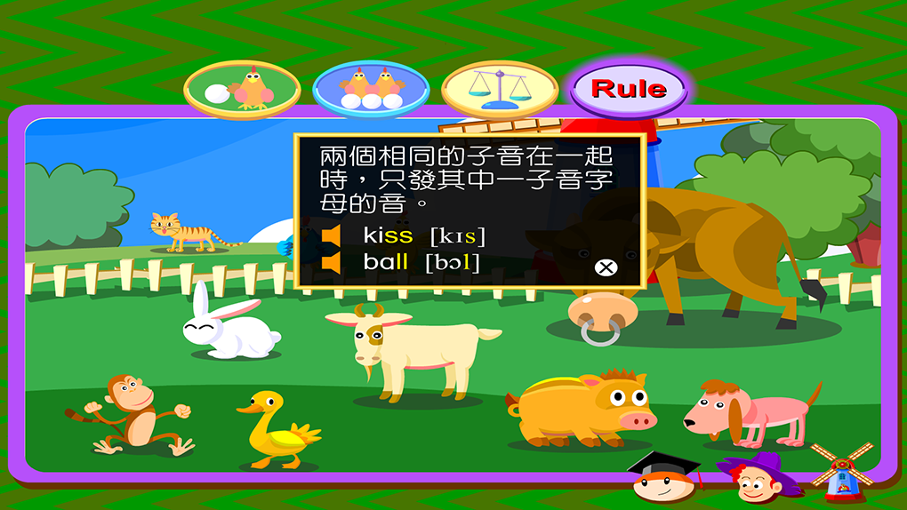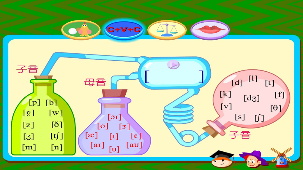 ( 上圖為 「子音 + 母音 + 子音」配對練習的畫面 )