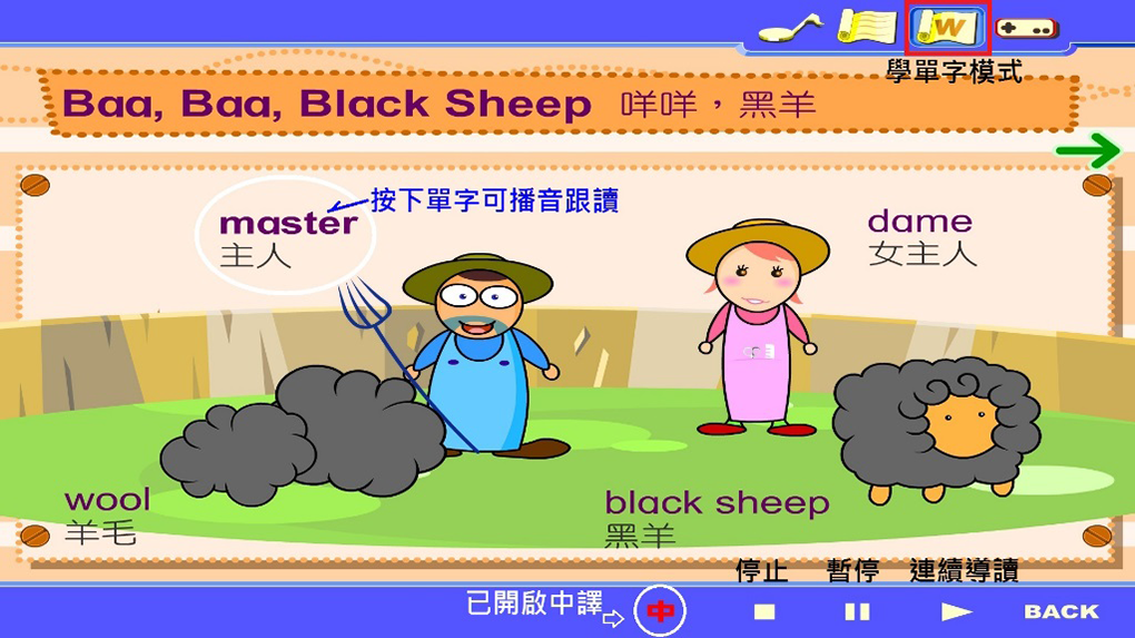 (上圖示範您逐句點播帶讀,一邊進行解說的示意畫面。)
