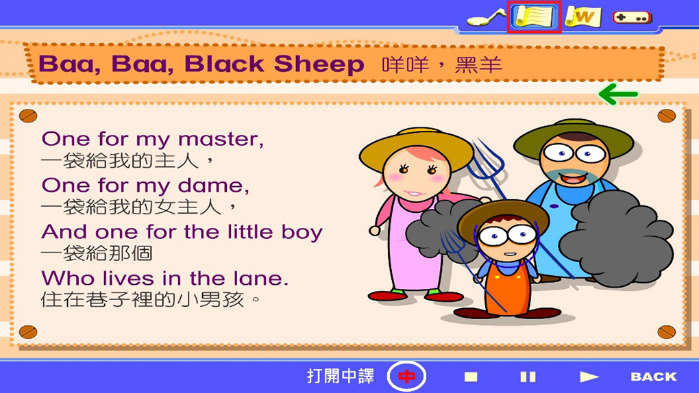 以往在教世界童謠時,您常需要上網去搜集材料,歌詞內容的教學常也需要再製作檔案,但操作上和教學效果容易受限。而孩子一般也因為無法自行深入練習歌詞中的單字和句子(型),模仿學唱也不太方便等因素,影響學習成果。