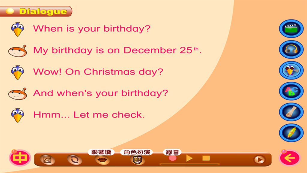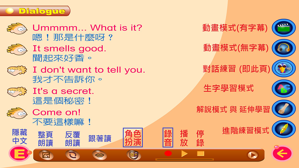 提供 逐句模仿練習 錄音 角色扮演 等多種功能