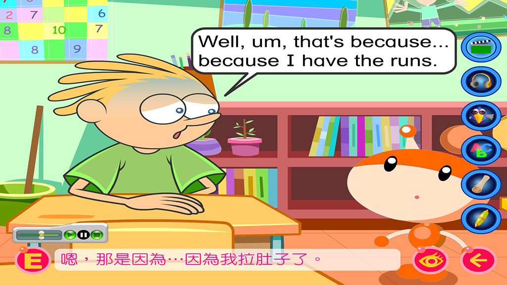透過有趣的迷你卡通動畫和情境對話,貼近孩子的生活經驗,傳遞他們可以真實感受的鮮活英語。有一些也許他們剛開始聽不太懂,但是他們仍然能感受當中的情境和所使用的語言,包括興奮、沮喪、高低語氣和停頓…等,以及聲音的各種表情。而幾遍之後,就全都能掌握,並且說得順溜了。