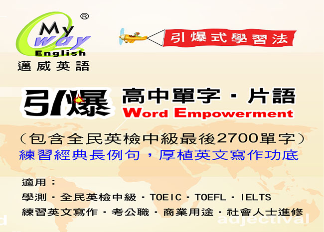 例句內容總字數達60,000字,包含一百種以上高級句式寫法。字數為高中英文三年課文總量二倍之多,且單字例句完全比照學測難度 (美國藍絲分級標準 Lexile 1200分 - 1400分)撰寫,範圍幾乎涵蓋所有重要議題,不只高效學會單字片語,也能同時快速拓展英文閱讀層面,更是練習英文造句及寫作最佳範本。<TOP>