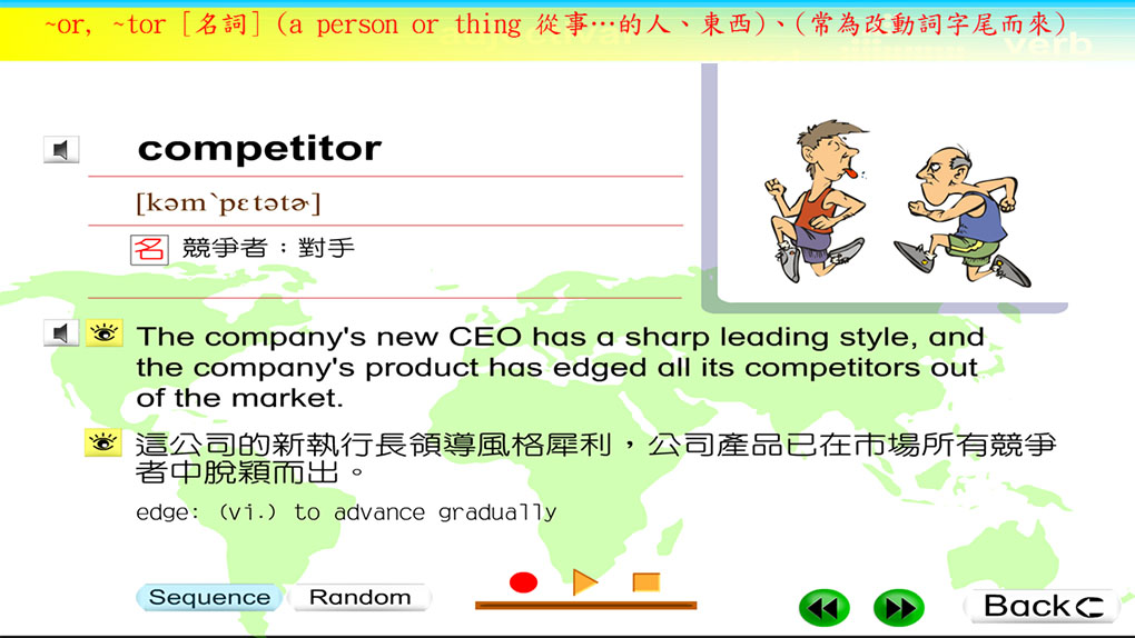 以上為 -or / -tor 字群中 competitor 的內容畫面