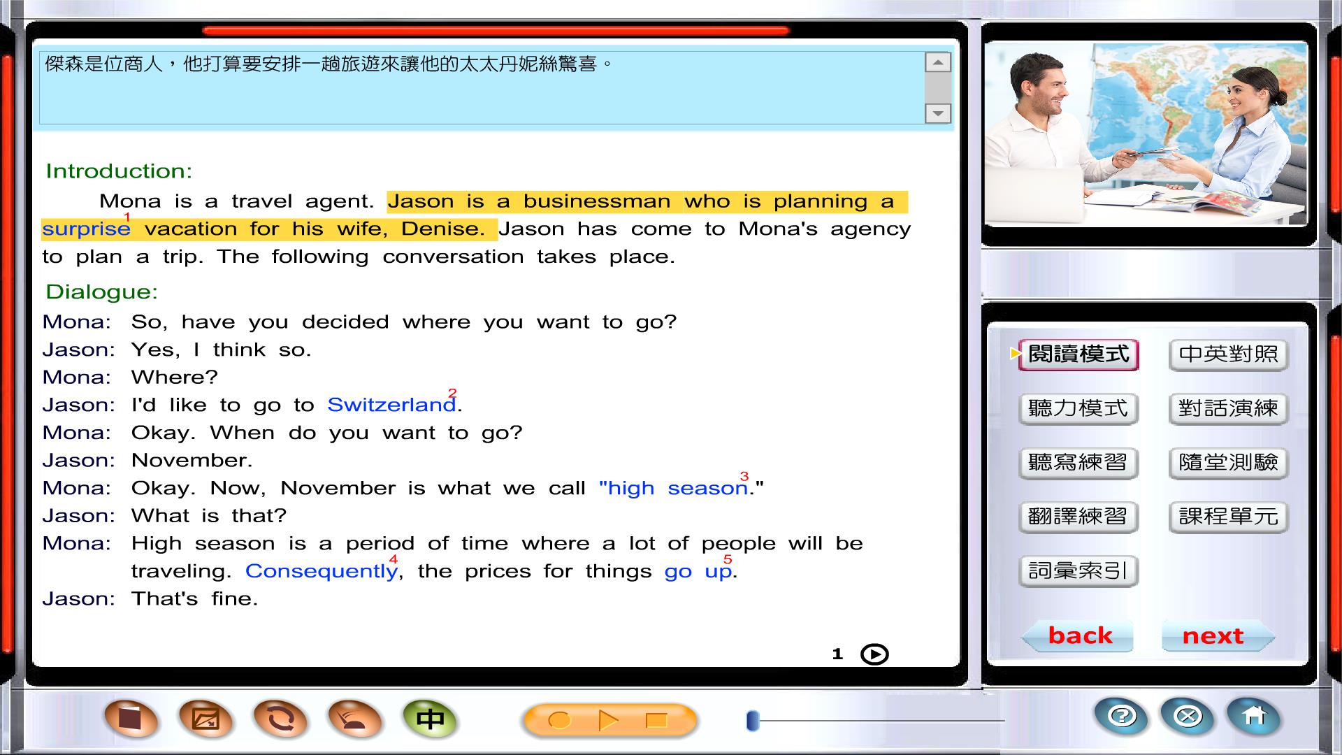 以上為閱讀模式的畫面,您可以隨時點選看句子的中文翻譯。